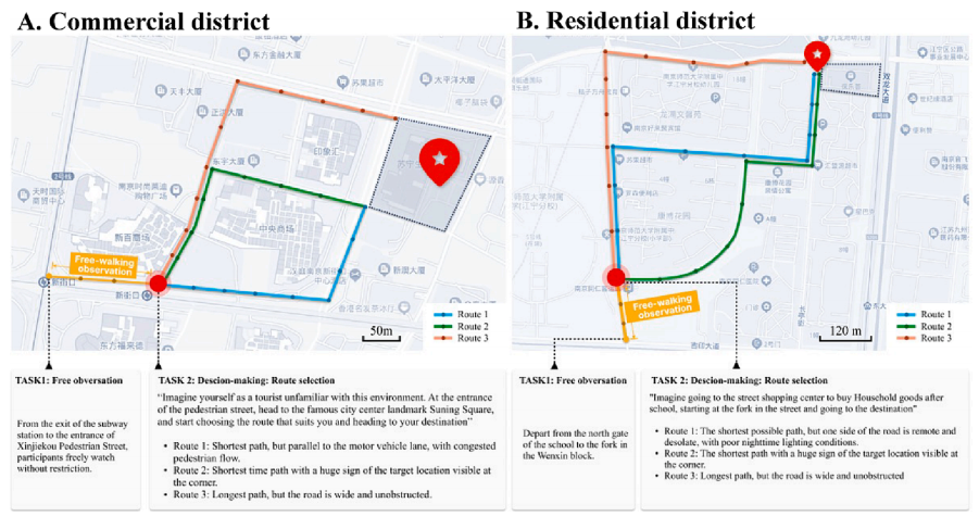 研究开始之前进行了场地可用性评估,确保城市环境具有代表性,并尽量减少虚拟现实与真实环境之间的差异。